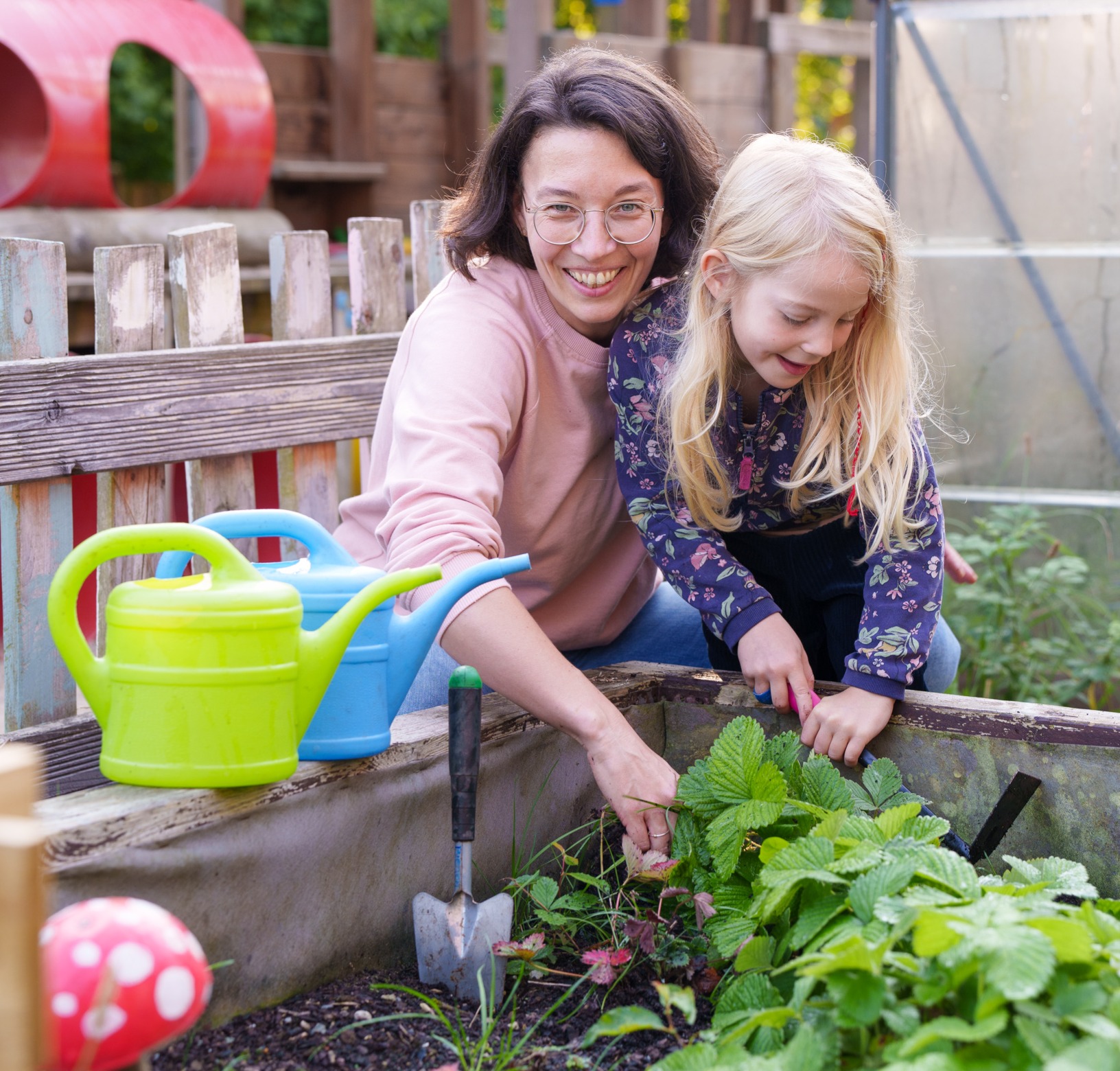 Sich selbst die Jacke anziehen, in der Gruppe mitspielen oder sich im Garten um Pflanzen und Gemüse kümmern: Mit Alltagsübungen fördern die Ergotherapeutinnen und -therapeuten bei den Elbkindern die Kinder, aber sorgen vor allem für ihre Teilhabe in der Gruppe. An erster Stelle stehe das Wohlergehen der Kinder, darauf folge die individuelle Förderung. Dazu können auch Körperwahrnehmung und Emotionsregulation – oder Gartentherapie gehören. Bei der Arbeit leitet sie immer die Freude des Kindes. Sie rollt einen Würfel rüber. Wie reagiert das Kind? Lächelt es, schaut es weg. Will es aktiv sein? Oder sie und das Kind beobachten gemeinsam das Basteln in der Gruppe. Anne Dombek begleitet das mit Bildkarten, Worten oder Gebärden. Letztere lernen Kinder mit Behinderung meist einfacher zu verstehen als Sprache. Wenn das Kind möchte, führt sie die Hände beim Basteln. Ob dabei ein Drache oder eine Schlange entsteht, ist nicht so wichtig. Die ganzheitliche Lernerfahrung zählt.